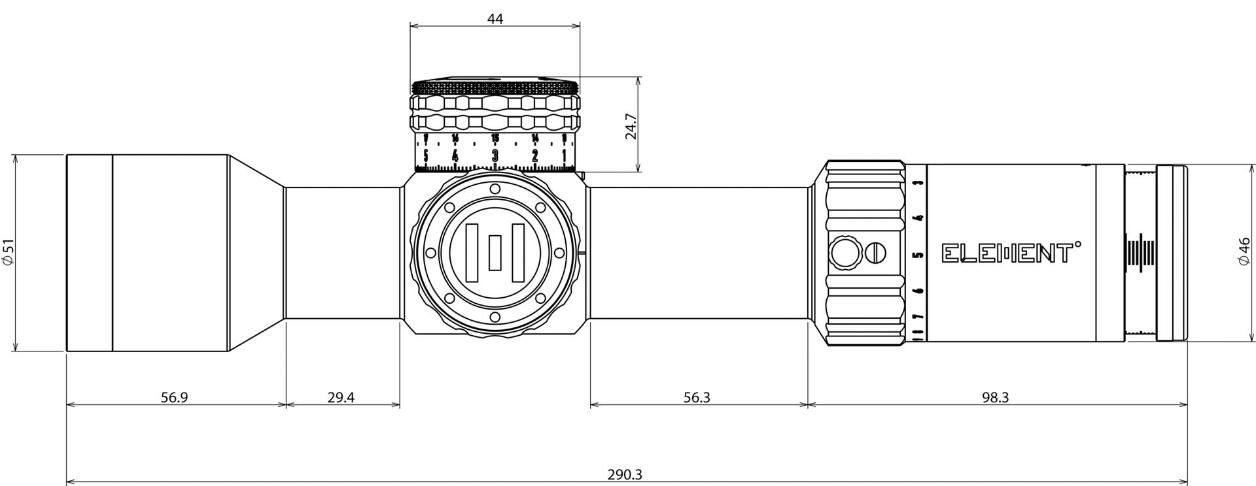 | CLICK VALUE | 1/10 MRAD (12 MRAD / REV) | |